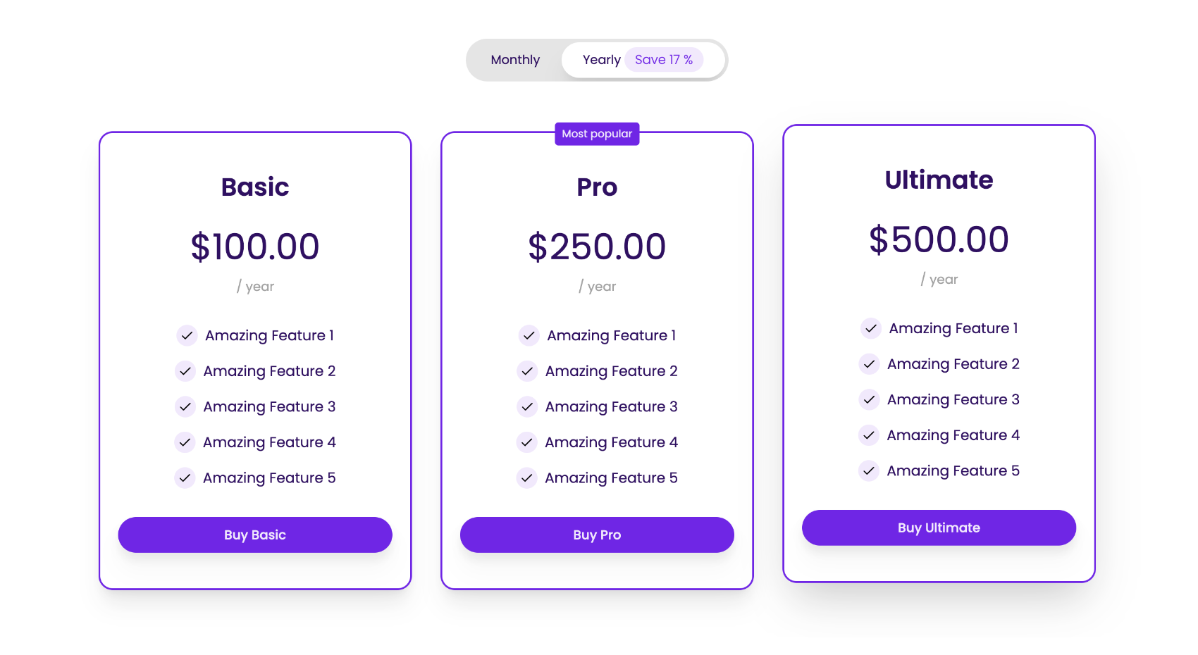 Easily offer your customers subscription-based & one-time purchase products with SaaSykit. All the webhook handling, subscription management, and billing are already set up for you in a beautiful and easy-to-use admin panel.